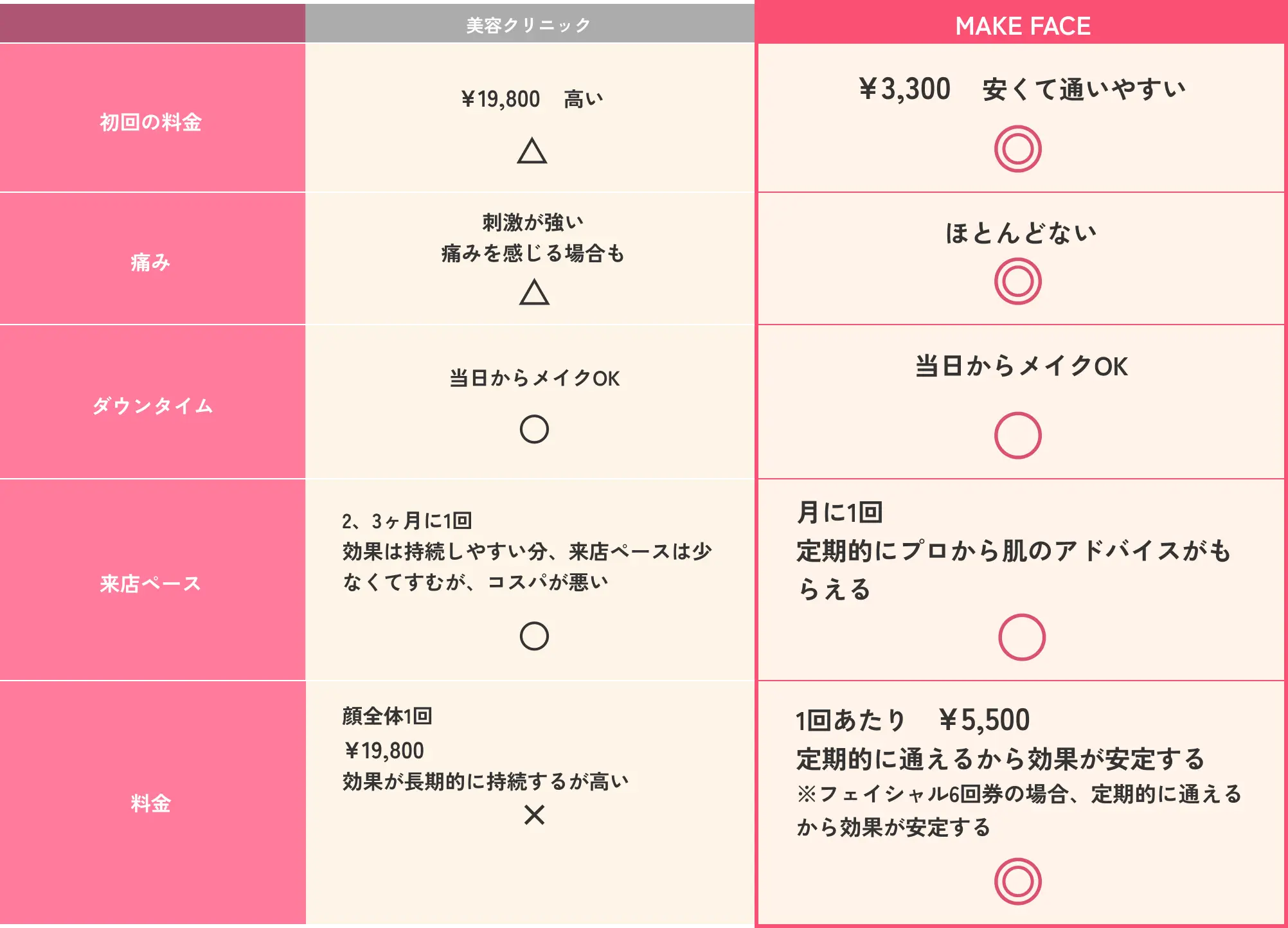 当店は、初回のカウンセリングでじっくりをお肌の悩みやお客さまの状態を把握させていただきます。疑問点や不安点もお聞きいただければ、スタッフが回答させていただきます。